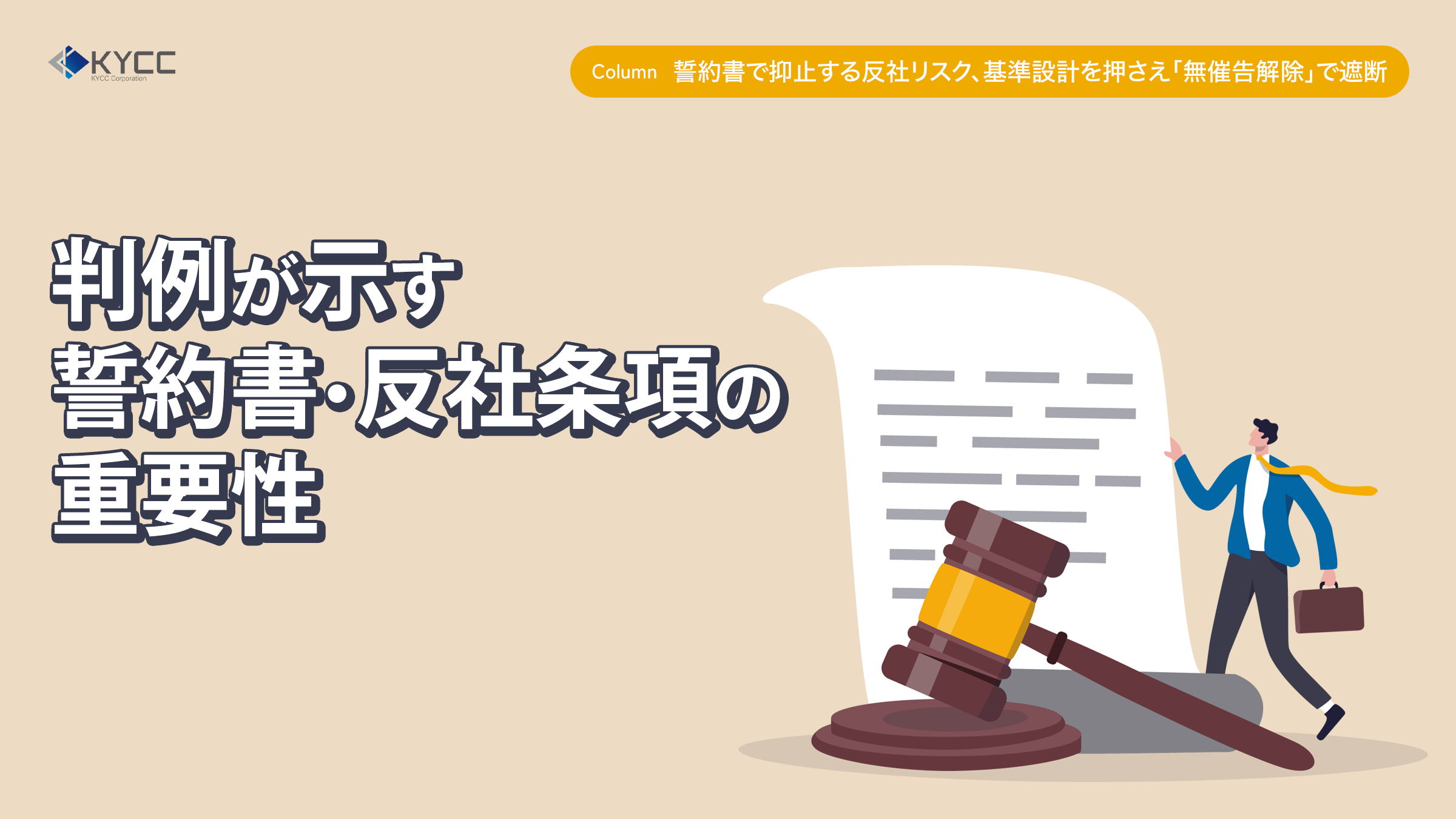 この記事では、誓約書を「入り口」とし、反社条項を「出口」とする2輪構成を中核に、定義の統一、証跡の完全化、3点セット「無催告解除・波及措置・拒否時解除」を運用標準として組み込む実務設計について説明していきます。