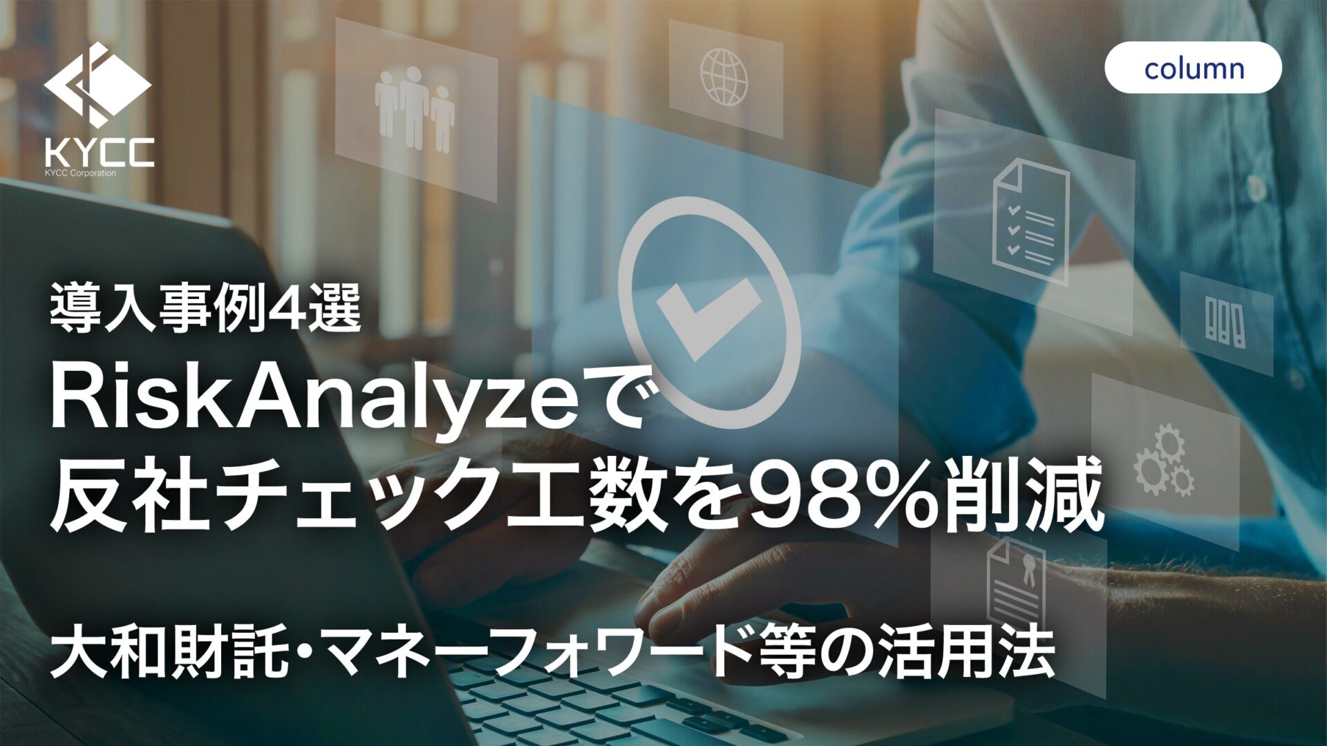 【導入事例4選】RiskAnalyzeで反社チェック工数を98%削減|大和財託・マネーフォワード等の活用法